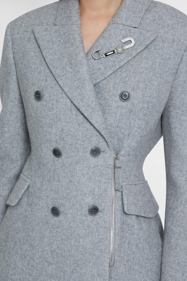 Giacca doppiopetto in misto lana con zip asimmetrica