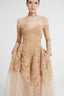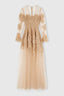 Abito in tulle e pizzo rebrodé con manica lunga e scollo a V