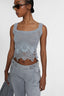 Un equilibrio perfetto tra purezza delle forme e ricercatezza dei dettagli artigianali. Questo top senza maniche incarna una femminilità moderna e sofisticata, con un design cropped e leggermente boxy che dona un'allure contemporanea e rilassata. Il filato in puro cashmere assicura una mano incredibilmente morbida e una sensazione di comfort avvolgente, mentre lo spallino largo conferisce struttura ed eleganza.