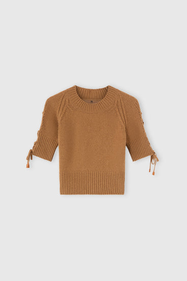 Maglia a manica corta in puro cashmere con intreccio laterale