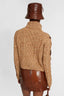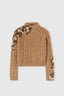 The body of the sweater is marked by a refined vertical braid motif, enriched in the center by a four-element braid that gives depth and rhythm to the workmanship. To further embellish the garment, splendid three-dimensional floral embroidery, made by hand with wool threads in shades of brown and ivory. Each embroidery, the result of Ermanno Scervino's distinctive mastery, is carefully positioned on the left shoulder - both front and back - and on the bottom of the right sleeve, creating a harmonious dialogue between craftsmanship and design.