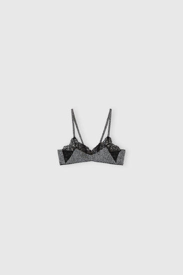 Unstructured wool blend bra with pied de poule pattern and lace applications