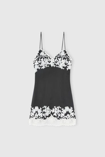 Lingerie-Style Dress in Stretch Viscose with Rebrodé Lace