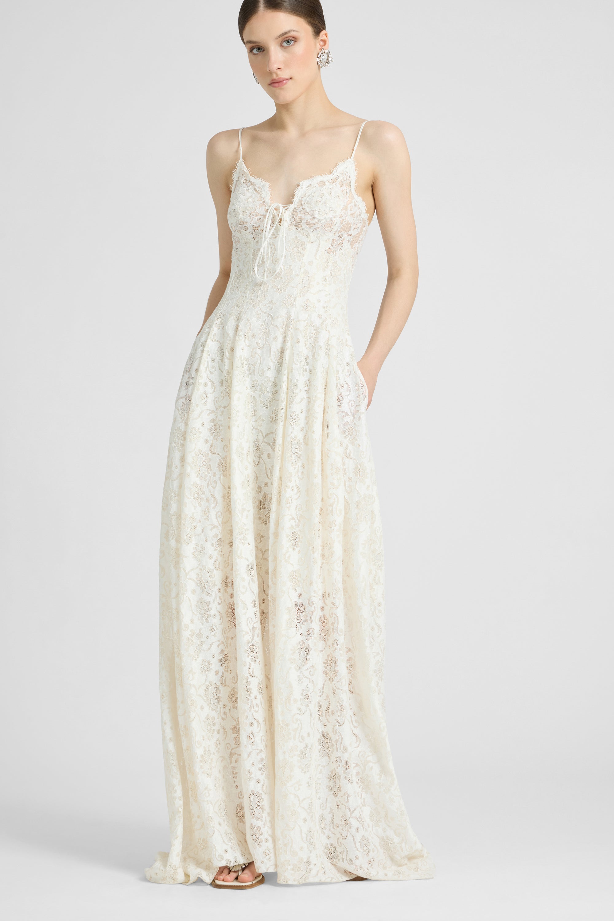 Long Lingerie-Style Dress in Linen and Cotton Lace