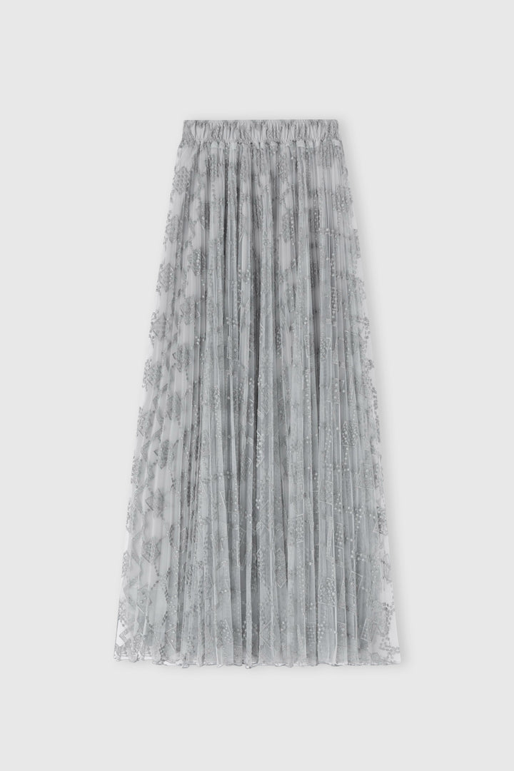 The design breaks the classic symmetry by replacing one of the traditional rhombuses with a circle, giving life to an innovative geometry that preserves the balance of the original decoration but renews its visual language. Following the central lines of the motif, a series of hand-applied baguette crystals in tone adds a calibrated and precious light, underlining the depth of the design with discreet refinement.