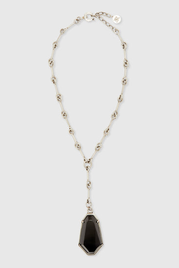 Pendant setting with irregular faceted stones in clear quartz or black onyx