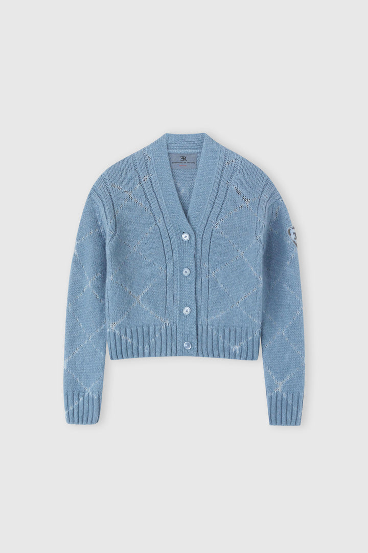 Microcrystals applied by hand to form the argyle motif on the front