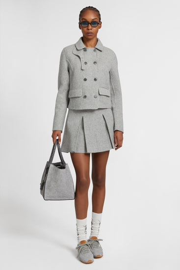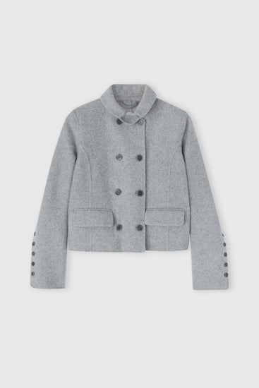Short double-breasted coat in virgin wool blend with adjustable collar