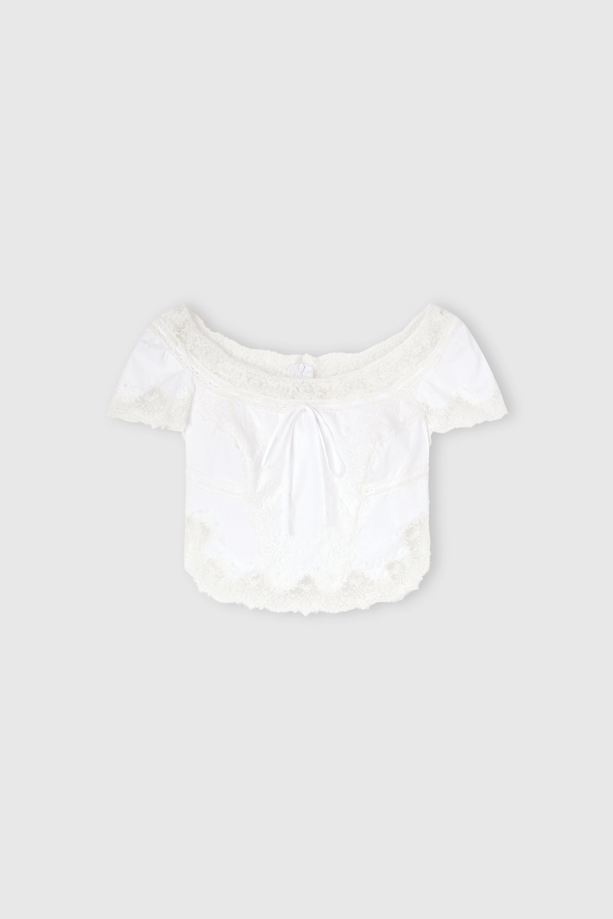 Short-Sleeve Cotton Poplin Top with Chantilly Lace