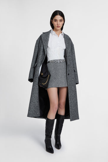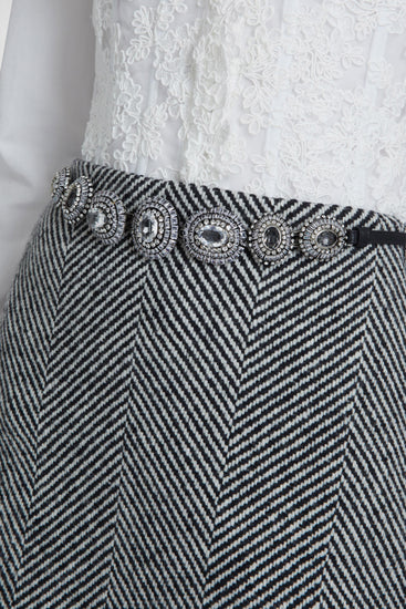 Virgin wool blend mini skirt with herringbone pattern