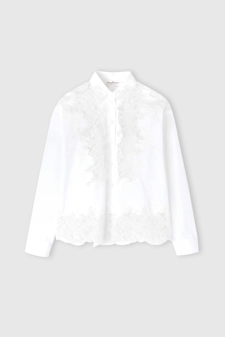 Tone-on-tone rebrodé lace, applied by hand on both sides with an exclusive ErmannoScervino floral motif
