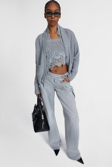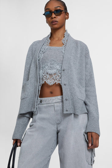 Perfect when paired with the matching top with lace at the bottom to create a twin set with a harmonious and refined style, this cardigan is designed to express the quintessence of designer knitwear.
