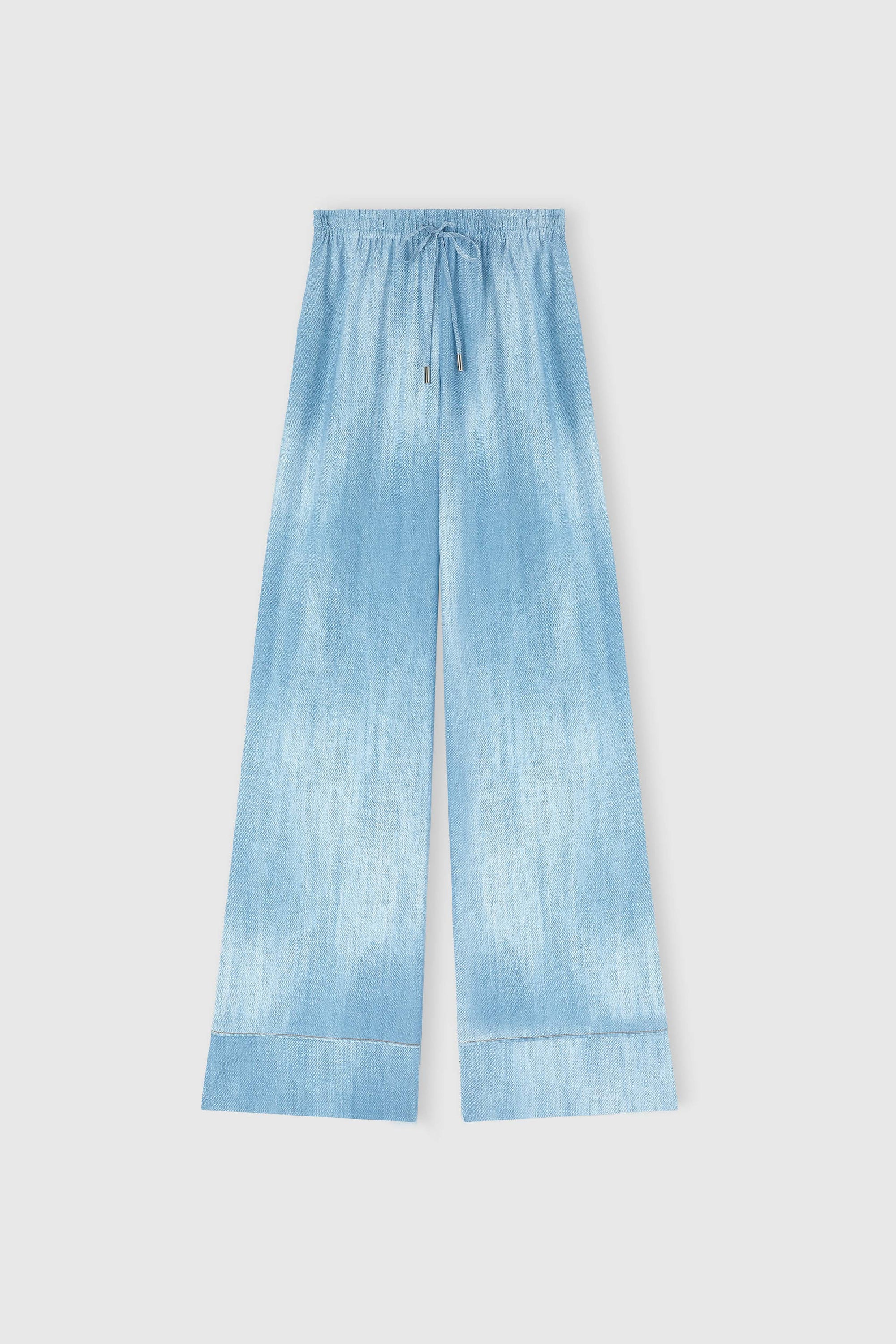 Pajama-Style Trousers in Marocain Jeans Print