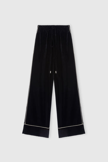 Palazzo pants in velvet with contrast piping
