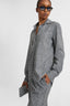 Viscose shirt with hand-applied crystals and herringbone pattern in shades of beige