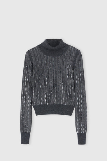 Wool and cashmere blend sweater with hand-applied baguette crystals