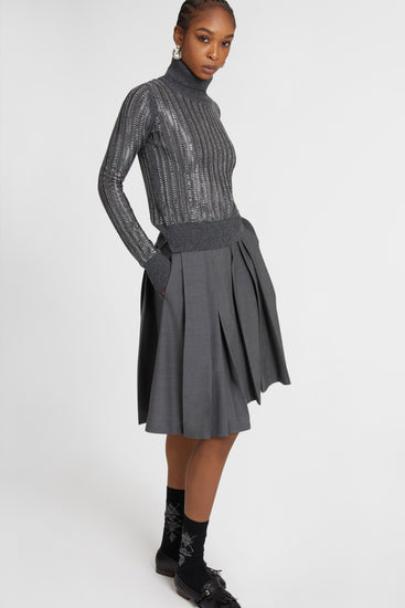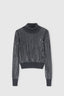 The ribbed pattern alternating with the matching baguette crystals, applied with artisanal care, gives the sweater a strong character and a touch of discreet luxury. Each crystal reflects the light in an elegant way, adding a brilliant detail without ever being excessive. The neck, bottom and cuff of the sleeves are finished with a narrow rib, to ensure greater elasticity and comfort, adapting perfectly to the body without constricting.