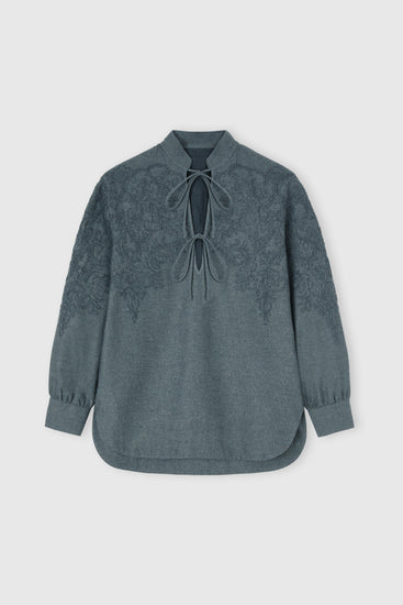 Cotton flannel blouse with Cornely lace