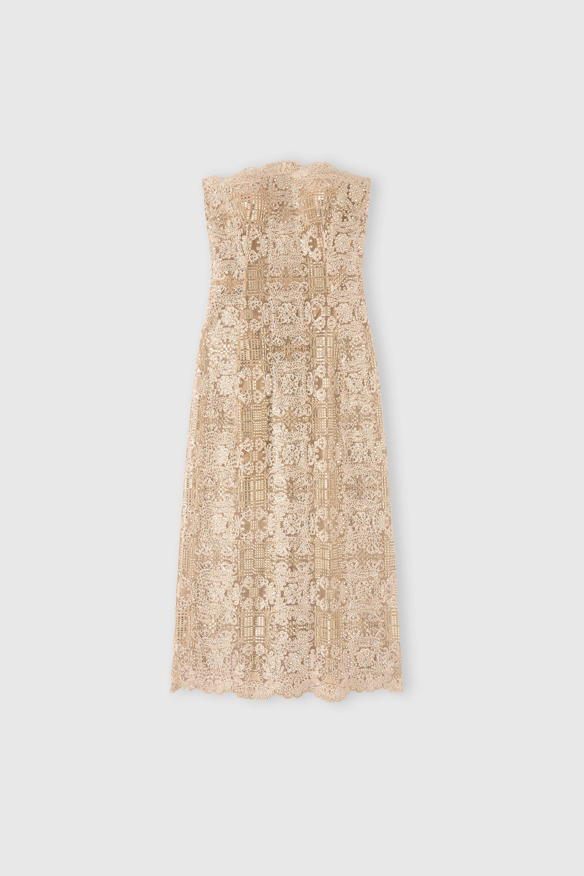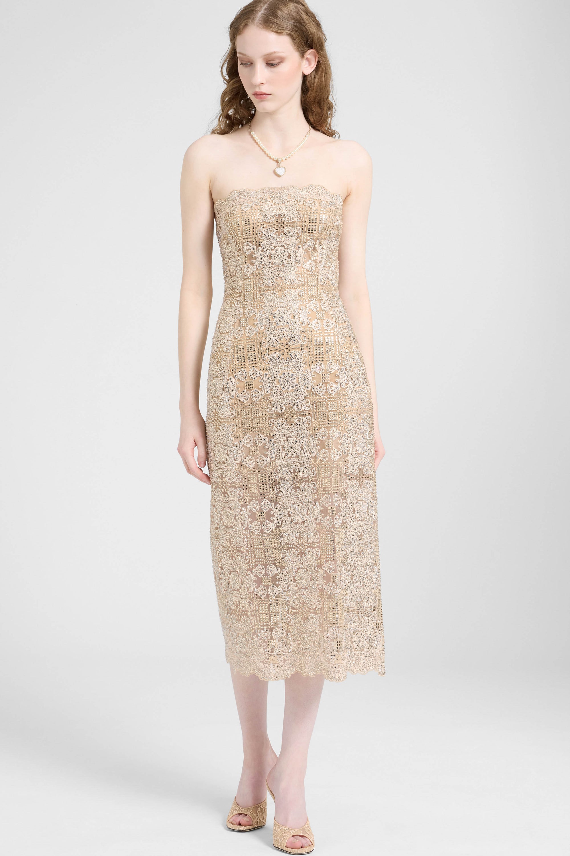 Midi bustier dress in tulle with maiolica embroidery and crystals