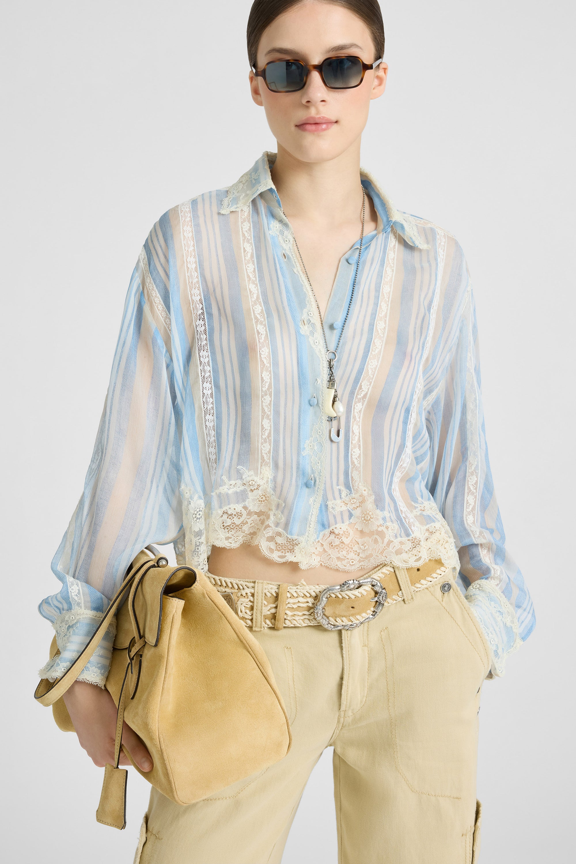 Silk shirt with striped print and lace detailsSilk shirt with striped print and lace detailsSilk shirt with striped print and lace detailsSilk shirt with striped print and lace details