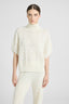 As enveloping as an embrace and as light as a breath, this poncho blends comfort and style in an intimate, refined interpretation of self-care. The high neck enhances its cozy feel, while the openwork knit, with tiny knots and fine cables, forms a delicate geometric motif reminiscent of lace. A piece designed for moments of quiet, celebrating craftsmanship and attention to detail.