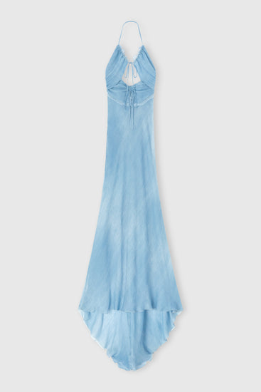 Long Lingerie-Style Dress in Silk Jeans Print with Lace Details