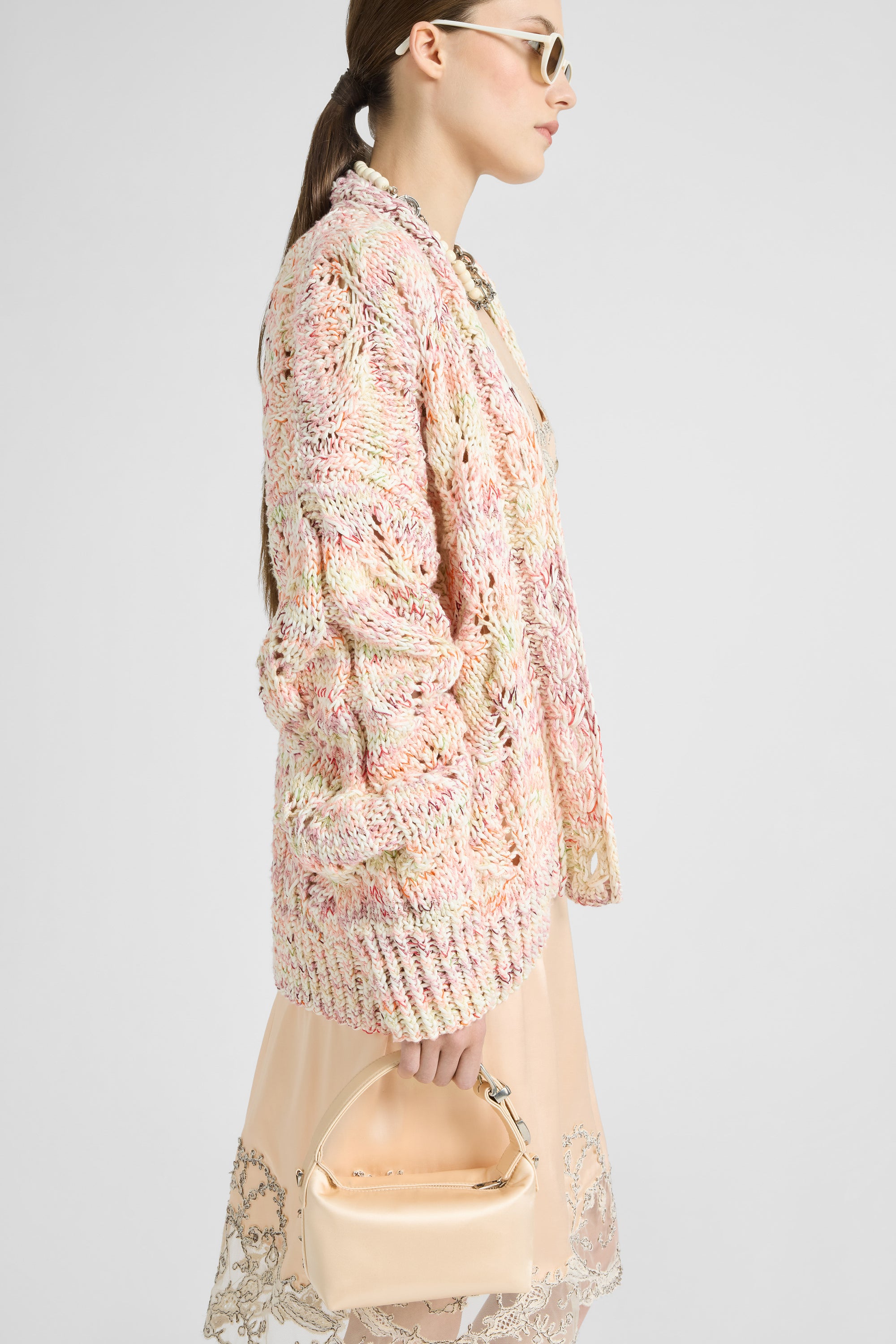 Midi Cotton Mouliné Cardigan with Interlaced Leaf Pattern