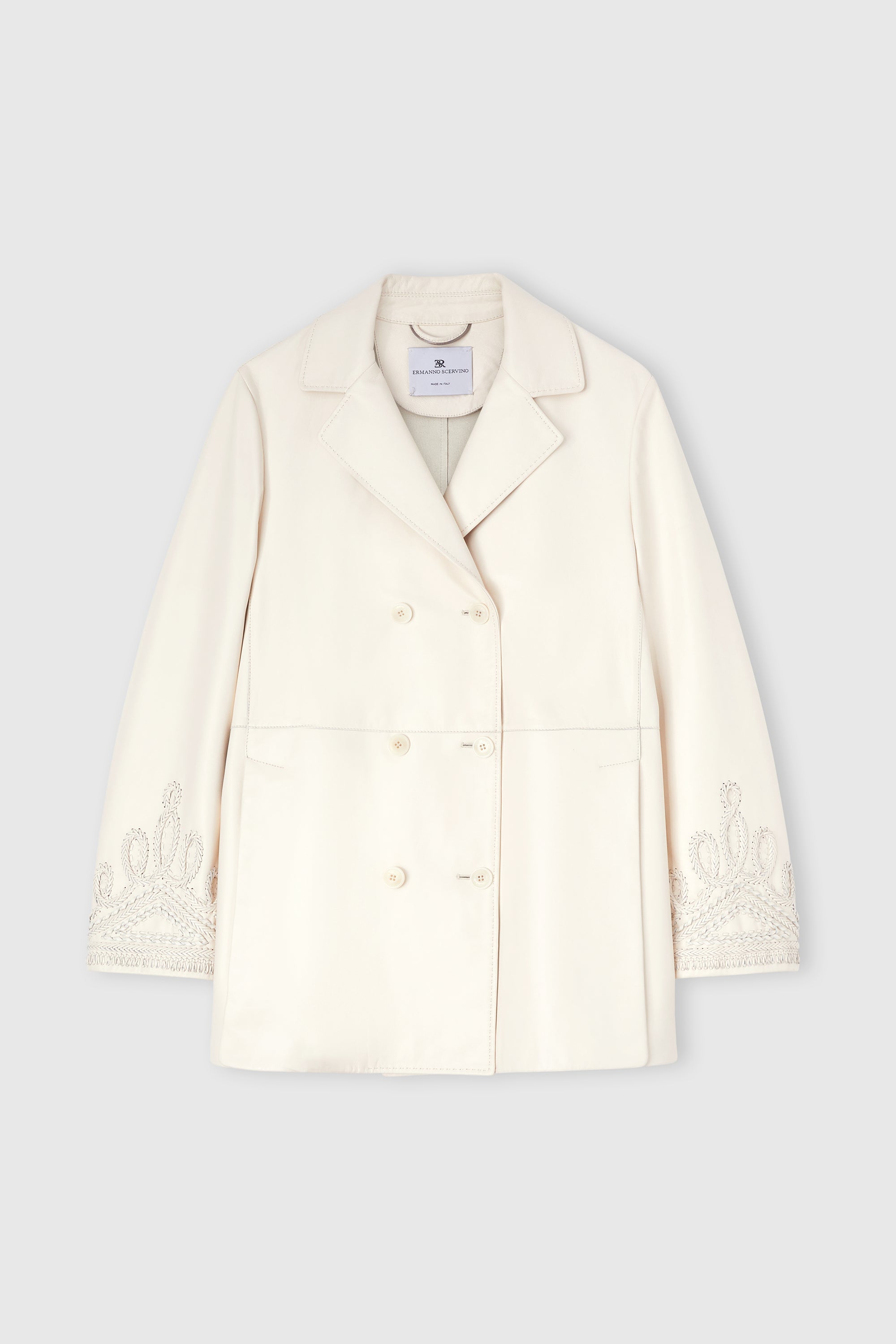 Double-Breasted Nappa Leather Jacket with Handcrafted Embroidery