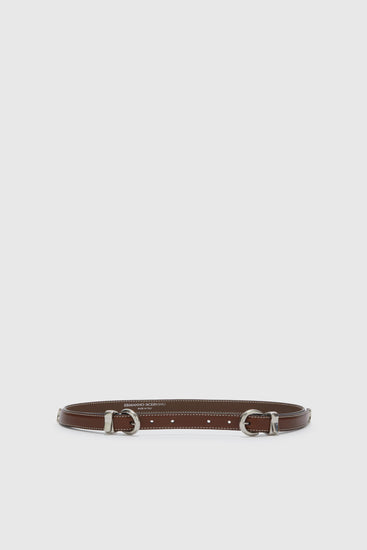 Brown belt in smooth calfskin with double buckle tip and loop