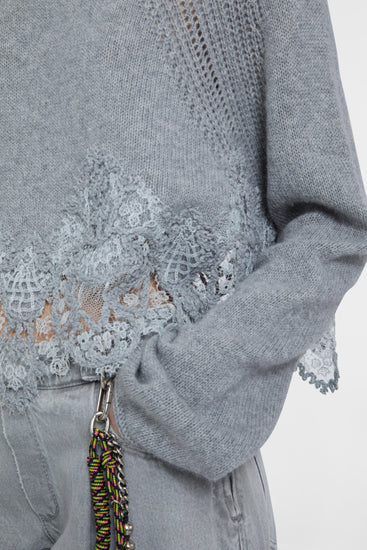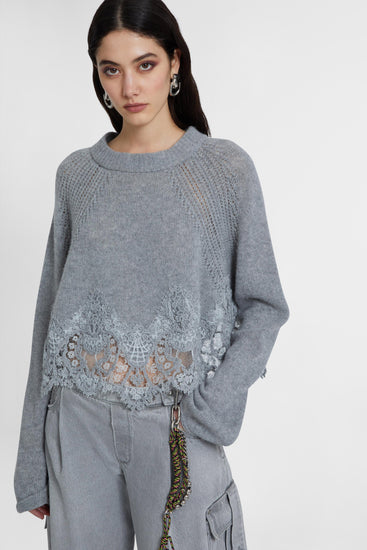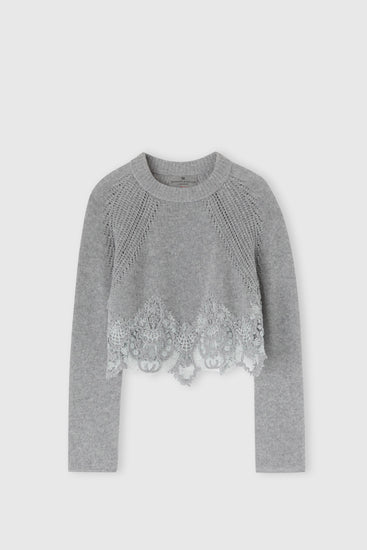Cropped sweater in pure cashmere with rebrode lace inlay