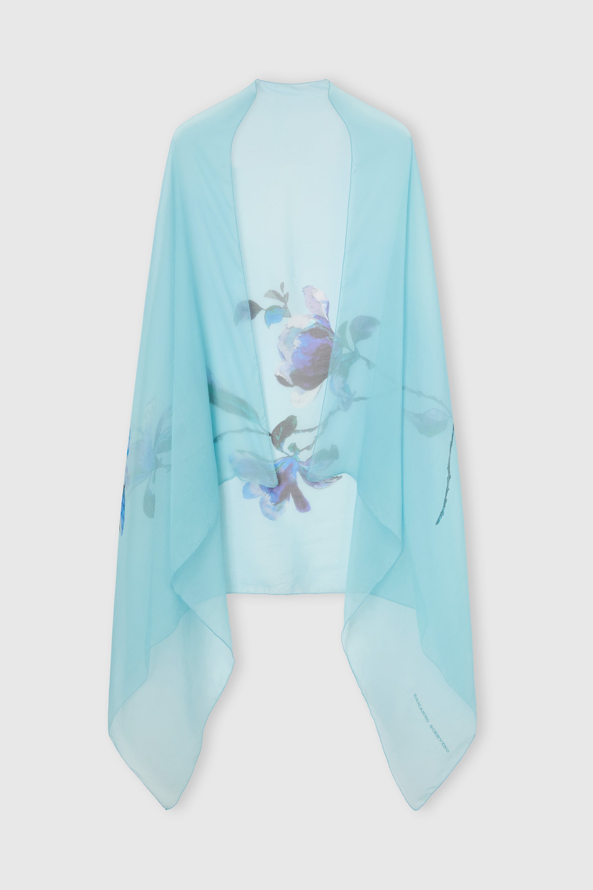 Pure silk chiffon stole with blue iris motif