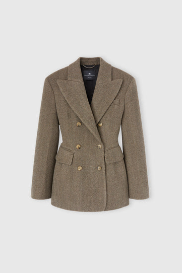 Sculptural double-breasted jacket in wool, silk and cashmere