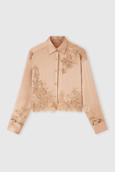 Stretch silk satin shirt with lace inserts