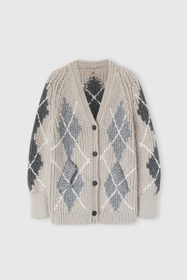 Alpaca, mohair and cashmere blend cardigan with argyle motif