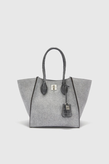 Maggie bag in melange-effect suede and crocodile-embossed leather