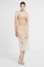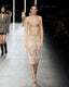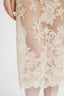 An elegance that reveals and conceals, striking the perfect balance between lightness and sensuality. This sheath skirt is crafted from soft tulle and enriched with the exclusive fine floral lace of the maison. At the top, layers of lace gently overlap, creating a refined degradé effect that fades delicately toward the scalloped hem, like embroidery dissolving on the skin.