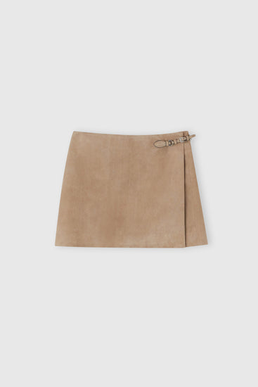 Suede wrap mini skirt