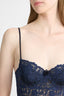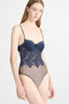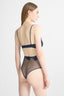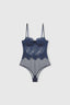 Lingerie bodysuit in stretch sheer tulle with three-dimensional floral embroidery