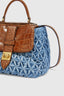 New Liza made with a double combination of materials: the body of the bag is in jeans with a special handmade smock stitch work, while the flap and handle are in crocodile print leather. The classic blue jeans fabric is treated with specific washes that make the canvas soft. The shades on the smock stitch work are handmade, making the bag unique. The top handle bag has a flap that functions as a zipped pocket and a personalised twist lock. The interior lining is in tone-on-tone split leather and there is a detachable leather shoulder strap. Measurements: 20*21*18.