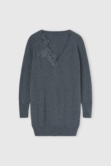 Wool and cashmere sweater-dress with braid and mohair rebrodé lace