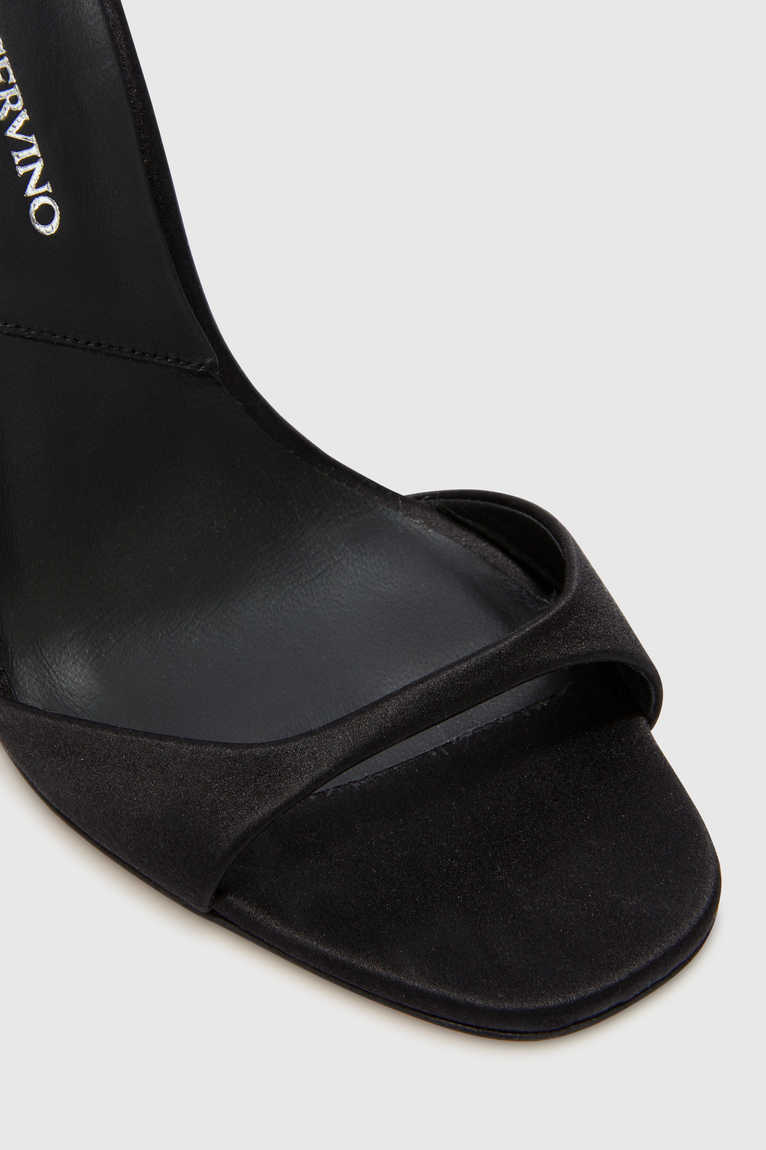 Black satin sandal with ankle strap