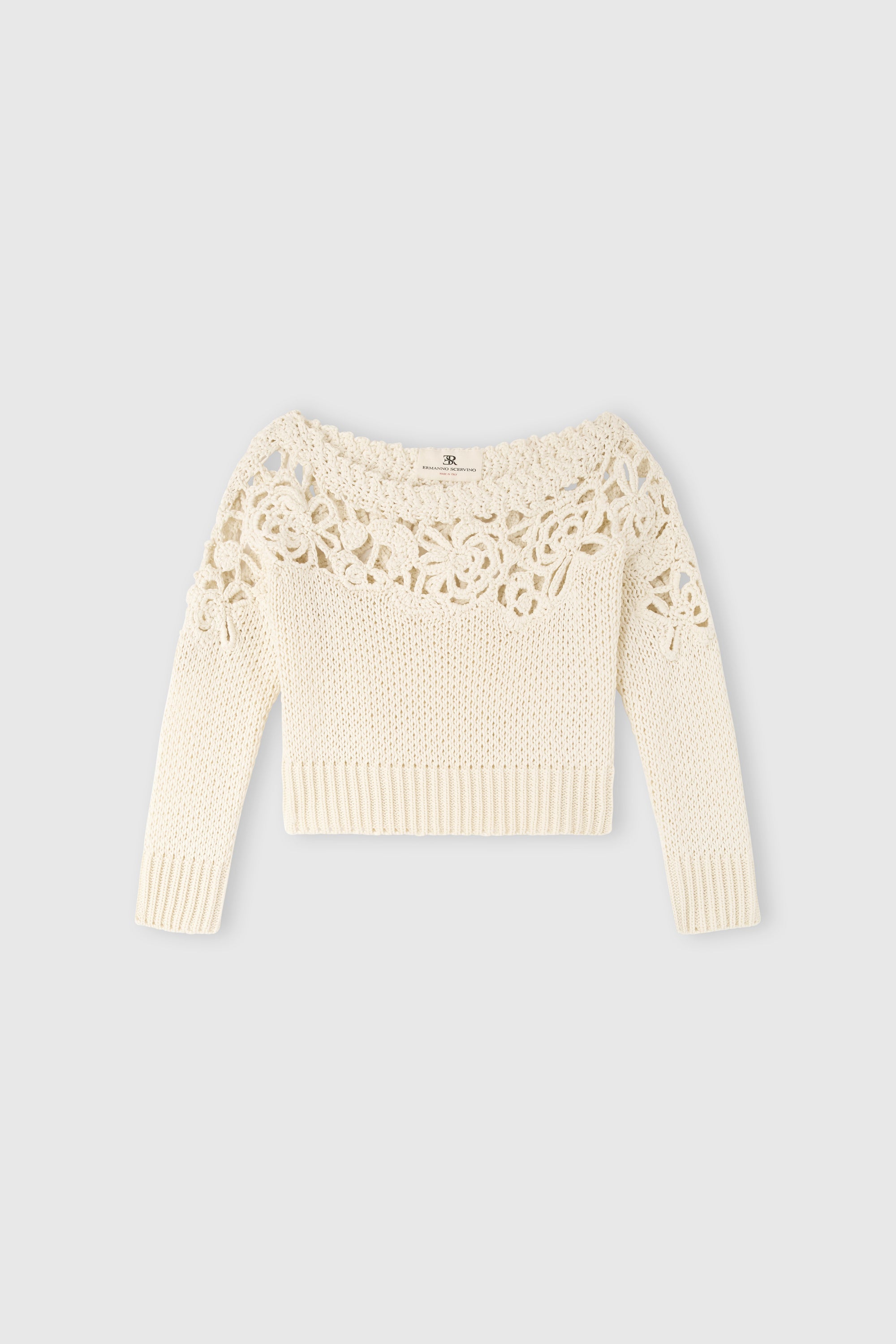 Long-sleeve crochet cotton sweater «Giardini d’autore»