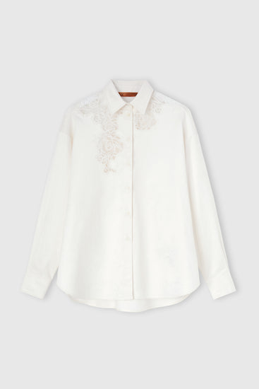 Cotton velvet shirt with cutwork embroidery and floral lace