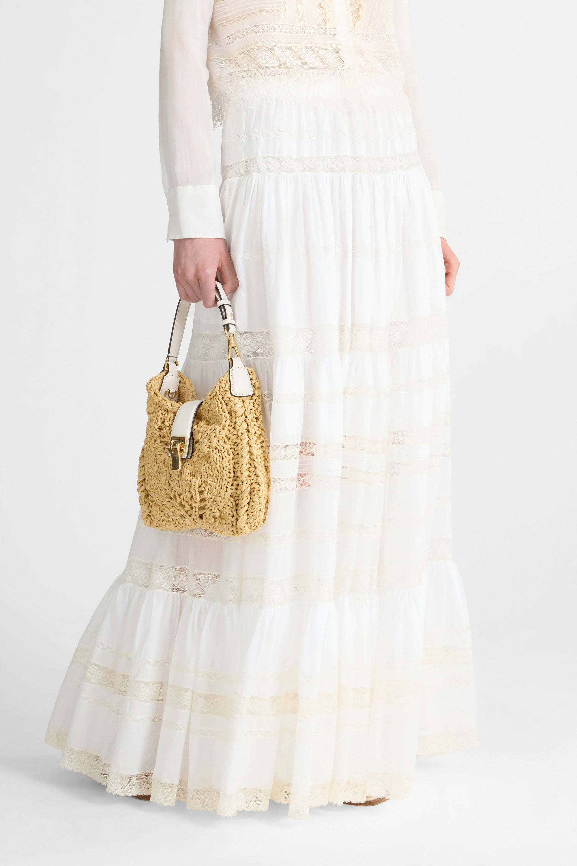 Tiers at the hem enhanced with hand-applied Valencienne lace.
