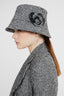 Retro charm meets couture refinement in this cloche hat crafted from pied de poule fabric, reinterpreted with a modern sensibility. The rich, dynamic weave brings depth and visual texture, while a floral appliqué in matching leather and fabric adds a sophisticated and iconic touch. Its soft, wraparound shape frames the face with timeless femininity.