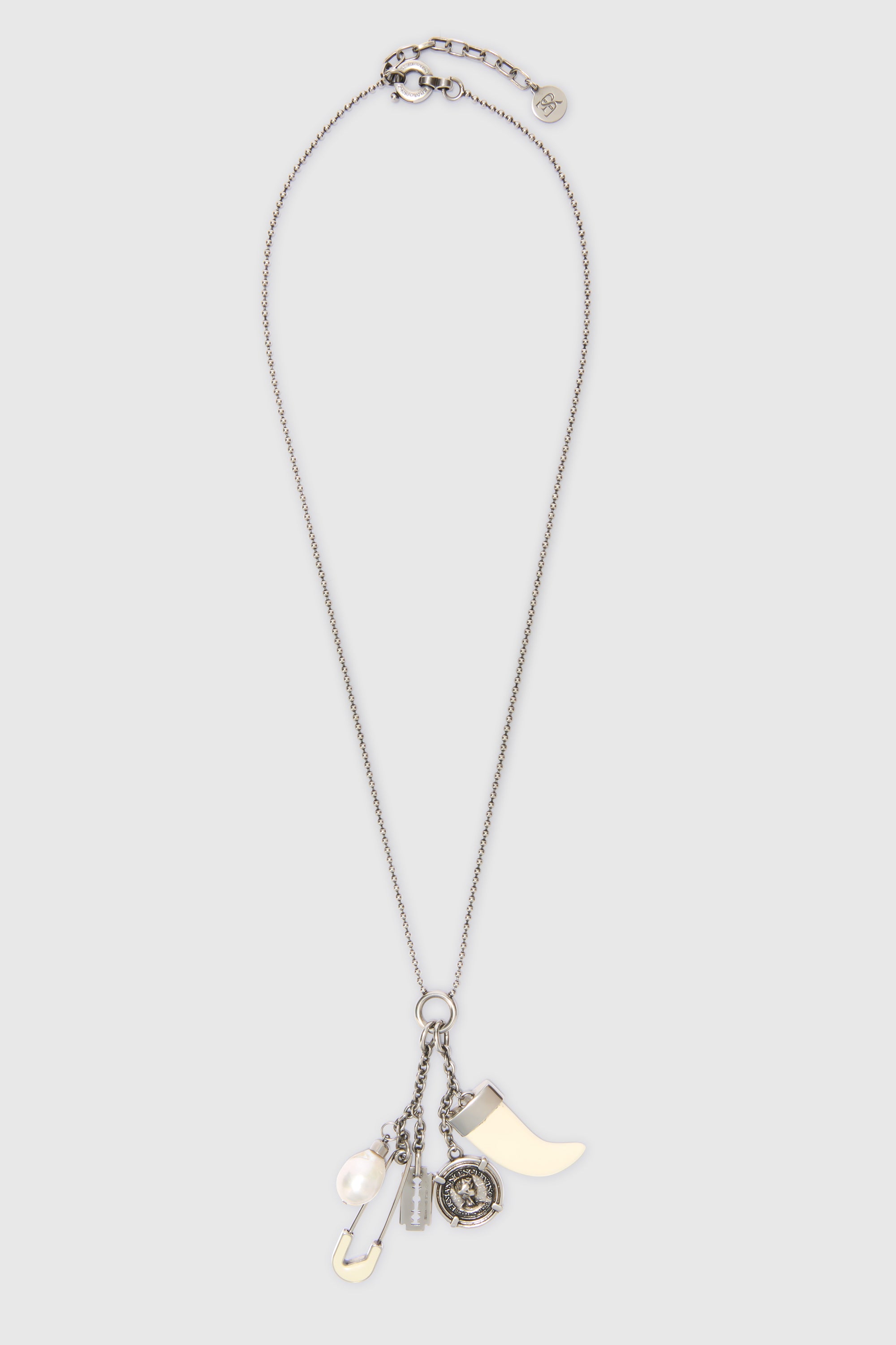Pendants with coins, horns, and safety pins