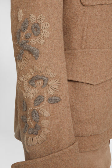 Three-dimensional floral embroidery hand-crafted with wool threads