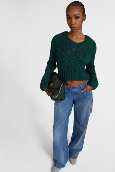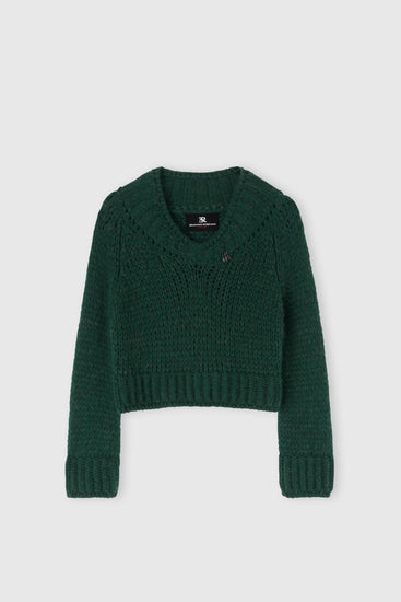 Cropped sweater in an alpaca, mohair and merino blend with a V-neck and baguette crystals