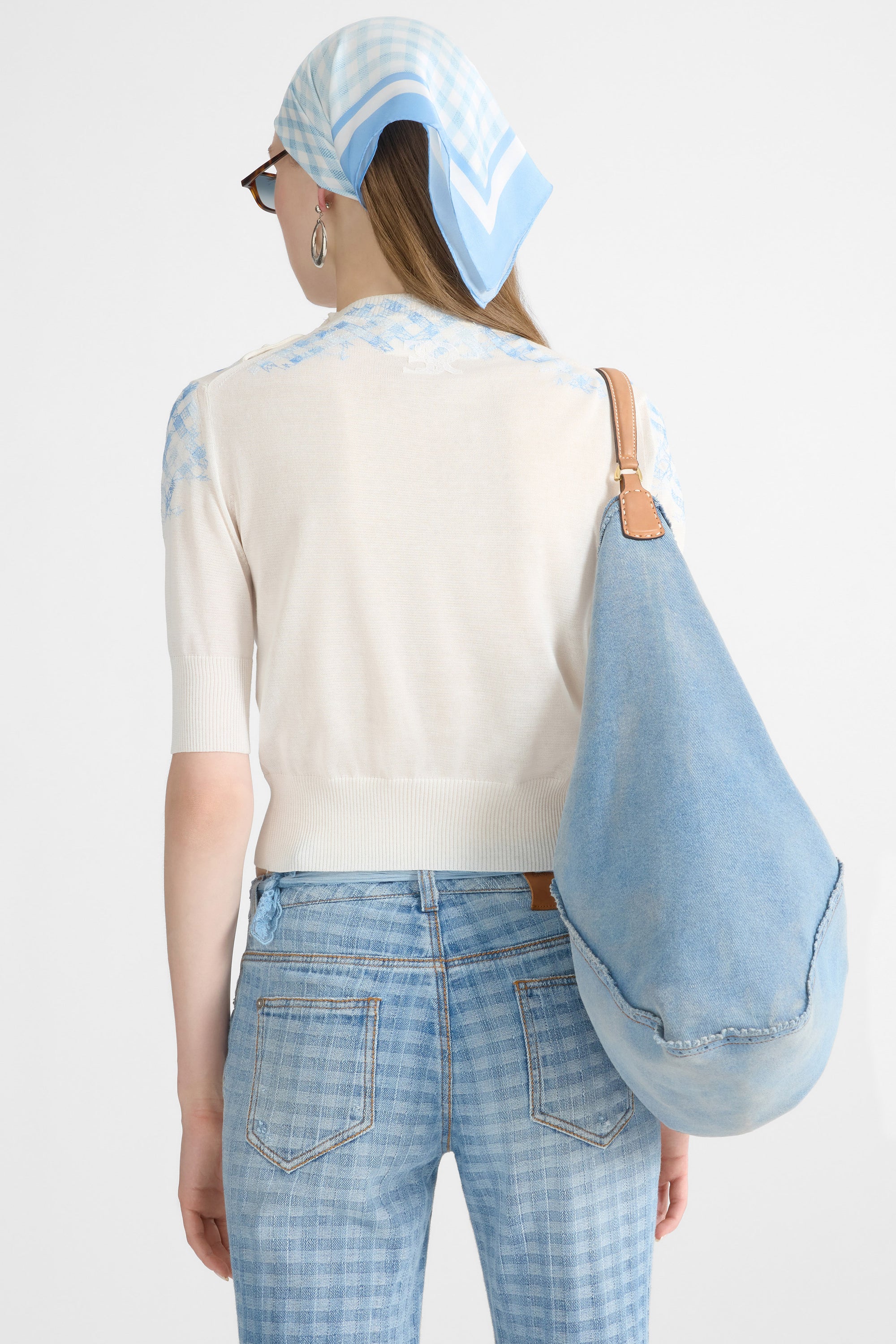 T-shirt en coton Filo di Scozia avec broderie micro vichy dégradée
