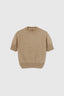 Pull en pur cachemire à manches courtes et encolure ronde. Le bord de l'encolure, de la chemise et des manches est réalisé en micro-côtes pour plus de douceur.